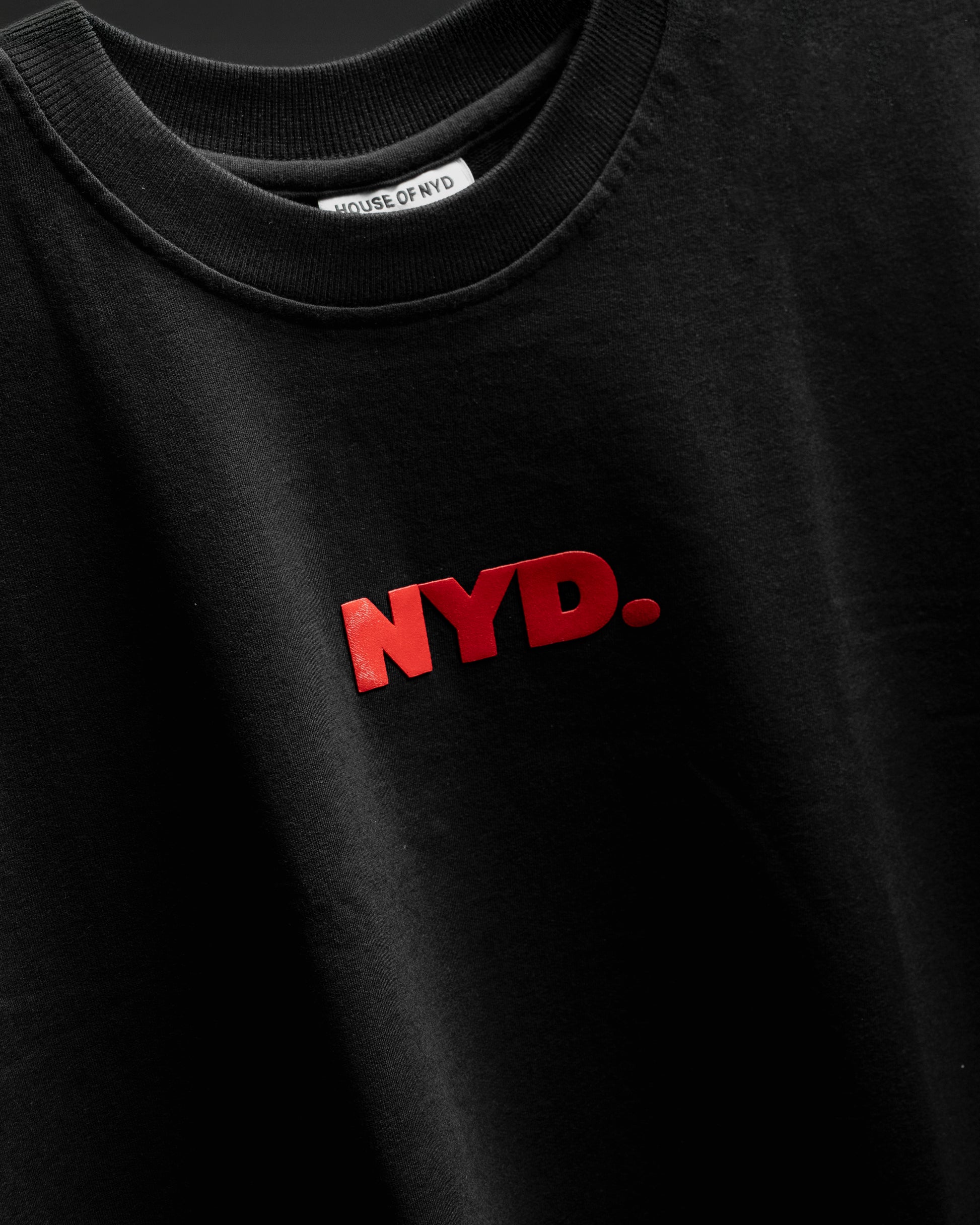 Finished with a bold red NYD logo, the contrast against the fabric creates a striking visual statement. Clean, powerful, and instantly recognizable — the logo adds identity without overwhelming the look.